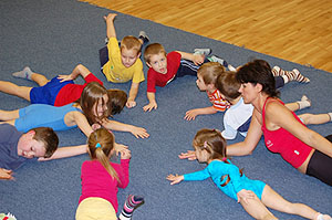 A foglalkozás során játékosan (mondókákkal, énekekkel) tornázunk, a talpizom erősítés, a törzsizomzat (hát, has) erősítése, és az ügyességfejlesztés érdekében, kötetlenül, vidáman.
